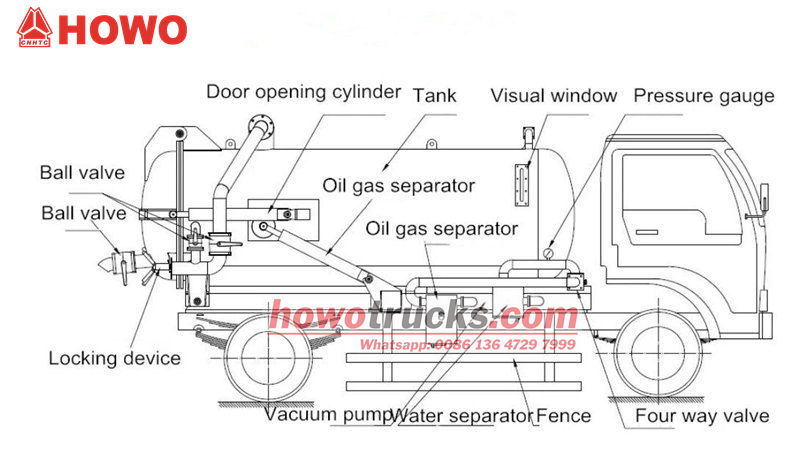 Máy bơm chân không tạo ra áp suất âm, hút nước thải, bùn và các chất gây ô nhiễm khác vào bể chứa nước thải kín thông qua ống hút. Bể chứa được trang bị thiết bị chống tràn để ngăn nước thải chảy ngược. bộ thân xe bồn vệ sinh đường ống thoát nước Được trang bị đồng hồ đo mức và đồng hồ đo áp suất để đảm bảo hoạt động hiệu quả và an toàn.