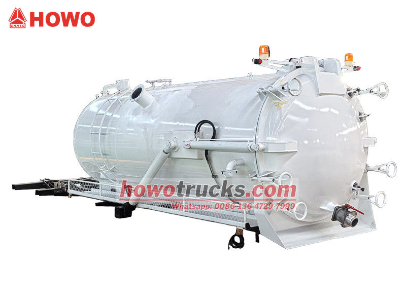 Bộ thân xe bồn hút chất thải 10 m³ (còn được gọi là phần thân trên của xe bồn hút chân không 10.000 lít, phần thân trên của xe bơm bể phốt 10 m³, bộ thân trên của xe bơm bể phốt 10 m³, phần thân trên của xe hút chân không, phần thân trên của xe bồn hút chân không, bộ thân trên của xe bồn xử lý nước thải) Thiết bị này sẽ được lắp đặt trên khung gầm và được sử dụng để làm sạch và thu gom các chất lỏng như nước thải, bùn, bể tự hoại, dầu thô, v.v. Nó thích hợp để làm sạch cống rãnh, hố ga, bể chứa chất thải, mương rãnh, v.v.