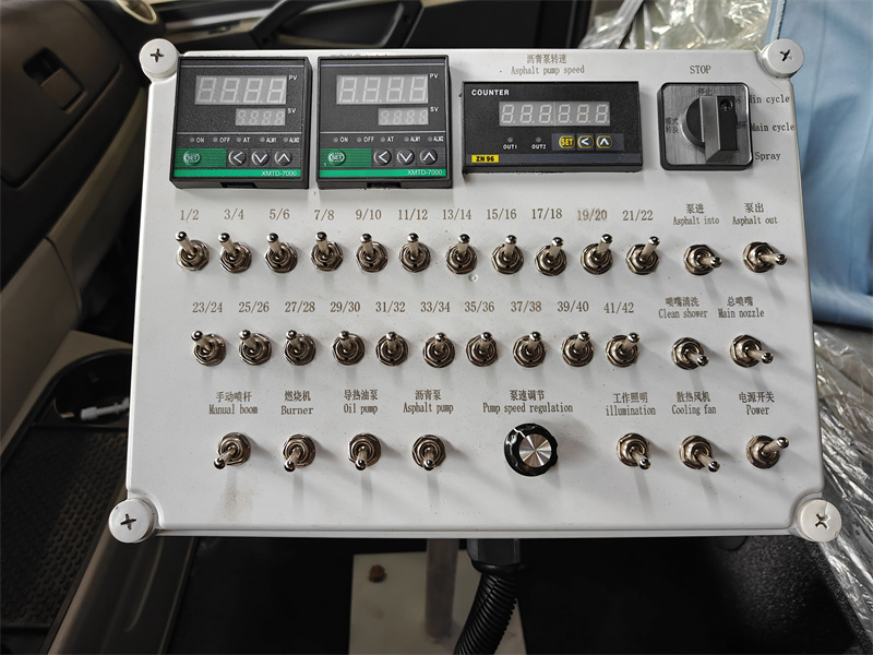 3. Hộp điều khiển trong cabin: Ghi lại lượng nhựa đường, khoảng cách phun và tổng lượng phun theo thời gian thực.