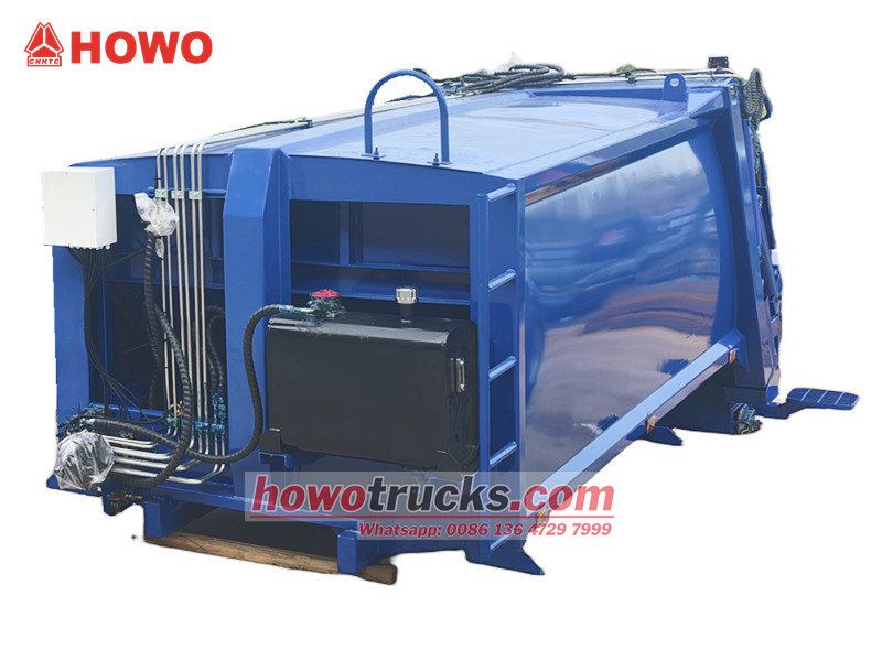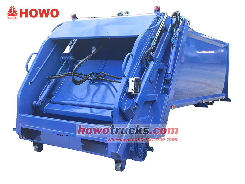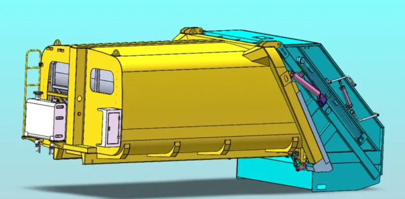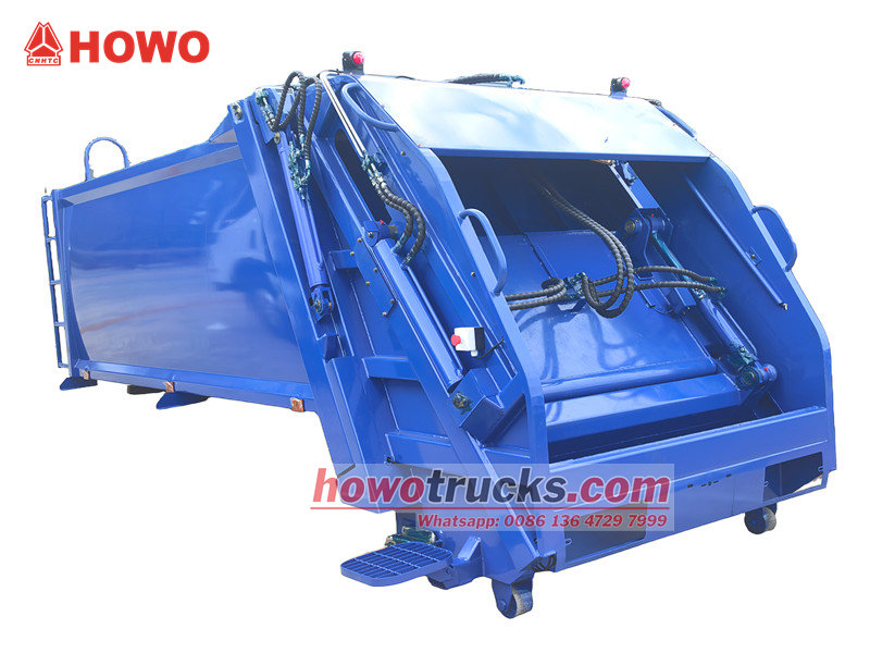 Thùng xe chở rác 8m³ (còn được gọi là thân trên xe chở rác kiểu nạp phía sau 8m³, kết cấu thượng tầng xe ép rác, bộ phụ kiện xe thu gom rác kiểu nạp phía sau, kết cấu thượng tầng xe ép rác, bộ phụ kiện thân trên xe ép rác, thân trên xe ép rác kiểu nạp phía sau, v.v.) Đây là một loại xe vệ sinh môi trường mới, chuyên dùng để thu gom, vận chuyển và loại bỏ rác thải. Phần thân trên là thùng chứa rác 8m³, phía sau là cơ cấu lật gầu, có 3 phương pháp vận hành để chất và dỡ rác.