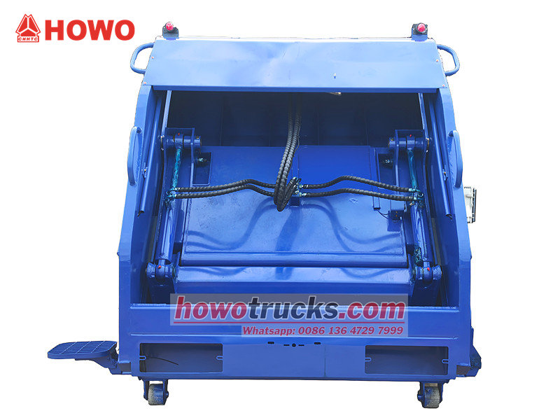 Thùng xe chở rác 8m³ được hàn từ các tấm thép cường độ cao, chống ăn mòn, có cấu trúc chắc chắn và khả năng làm kín tuyệt vời để ngăn ngừa hiệu quả rò rỉ nước thải và mùi hôi. Bên trong thùng xe được trang bị hệ thống tấm đẩy và ray dẫn hướng, sử dụng thiết bị thủy lực để tự động nén, đẩy và dỡ rác, giúp cải thiện đáng kể khả năng chứa và hiệu quả vận chuyển.