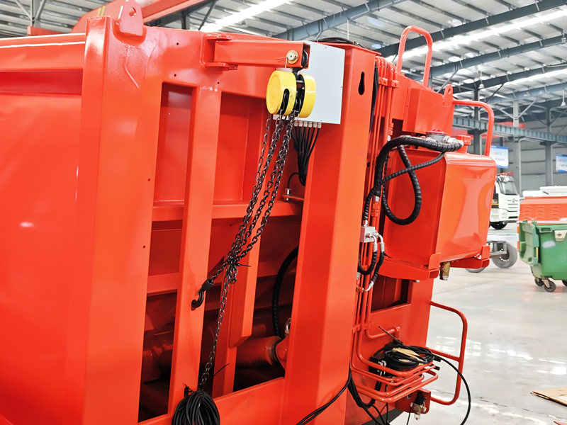 Bề mặt tiếp xúc giữa thân thùng và bộ phận nạp liệu được trang bị dải gioăng cao su đặc biệt, và sử dụng thiết bị khóa thủy lực để làm kín bằng lực nén, mang lại hiệu quả làm kín tốt; phần dưới được thiết kế với máng hứng nước có cấu trúc đặc biệt, cung cấp khả năng bảo vệ kép, ngăn ngừa hiệu quả việc rò rỉ nước thải và loại bỏ ô nhiễm thứ cấp.
