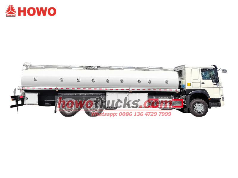 13000×2Xe bồn chở nhiên liệu HOWO 18.000L là một loại xe chuyên dụng hạng nặng được thiết kế để vận chuyển nhiên liệu, được chế tạo trên khung gầm HOWO 6×4 và bao gồm thân bồn phía trên và khung gầm. Bồn chứa chính được làm bằng thép carbon dày 6mm được xử lý chống ăn mòn, có dung tích 18.000 lít. Thiết kế tiên tiến của nó bao gồm chín khoang độc lập, cho phép vận chuyển riêng biệt nhiều loại dầu khác nhau để ngăn ngừa hiệu quả sự nhiễm chéo. Phần trên của bồn được trang bị lối đi chống trượt bằng nhôm, nắp hố ga tiêu chuẩn châu Âu (bao gồm các thiết bị an toàn như van thở và van chống tràn), và một bơm nhiên liệu lưu lượng cao 60m³/h, kết hợp với ống dẫn nhiên liệu 4 inch để chuyển nhiên liệu hiệu quả.