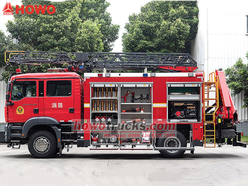 ---Đội cứu hỏa Howo có thể đồng thời thực hiện cứu hộ trên cao, xử lý vật nặng và kiểm soát hỏa hoạn.;