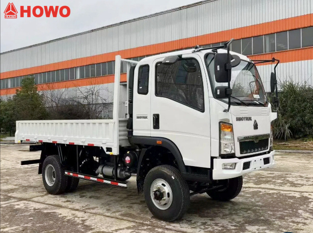 Xe tải chở hàng HOWO 4x4 dẫn động bốn bánh 5 tấn được cải tiến dựa trên khung gầm xe tải nhẹ một hàng HOWO 2080 dẫn động bốn bánh. Xe có tổng trọng lượng 9890kg, tải trọng 5 tấn, chiều dài cơ sở 3800mm, được trang bị động cơ Yunnei YN4102QBZL 116 mã lực và hộp số 6 cấp WLY6TS55C. Thùng xe có kích thước 4850*2150*550mm với độ dày thành bên 3mm và đáy 4mm. Các tấm vách bên và tấm vách phía sau có thể mở ra để dễ dàng bốc dỡ hàng hóa.