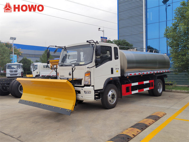 Cái này Xe bồn chở nước uống HOWO Được trang bị một cách sáng tạo với lưỡi cày tuyết gắn phía trước, có khả năng lệch hướng ngang ±30° và dọn sạch tuyết sâu đến 200mm với tốc độ làm việc 30-50km/h, biến nó thành một giải pháp đa chức năng. Nó đáp ứng hiệu quả nhu cầu vận chuyển nước uống hàng ngày đồng thời thực hiện nhiệm vụ dọn tuyết vào mùa đông, trở thành lựa chọn lý tưởng cho các dịch vụ vệ sinh đô thị và các vùng cực lạnh.