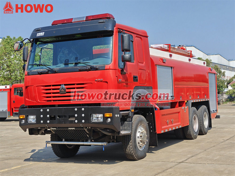The Xe chữa cháy và chở nước Howo sử dụng khung gầm hạng nặng Sinotruk với hệ dẫn động 6x6. Xe được trang bị...WP12S400 E201 Xe chữa cháy Howo 6x6 được trang bị động cơ công suất định mức 400 mã lực và hộp số sàn 12 số tiến và 2 số lùi. Xe có dung tích bình chứa 8000 lít nước và 1500 lít bọt, được làm bằng vật liệu composite PP chống ăn mòn. Trên nóc xe được lắp đặt vòi phun nước với lưu lượng 45 lít/giây và tầm phun hơn 55 mét.