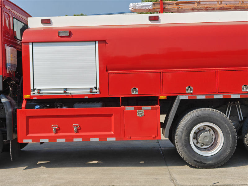 Khoang chứa thiết bị được làm bằng hợp kim nhôm không chỉ nhẹ mà còn không bao giờ bị gỉ, giúp kéo dài đáng kể tuổi thọ. Bồn chứa chất lỏng được làm bằng vật liệu composite PP vừa nhẹ vừa bền. Từng chi tiết đều thể hiện sự khéo léo tinh tế, từ cửa cuốn có thiết kế rãnh thoát nước đến bàn đạp chống trượt, tất cả đều phản ánh sự quan tâm chu đáo đến sự an toàn và tiện lợi của lính cứu hỏa.