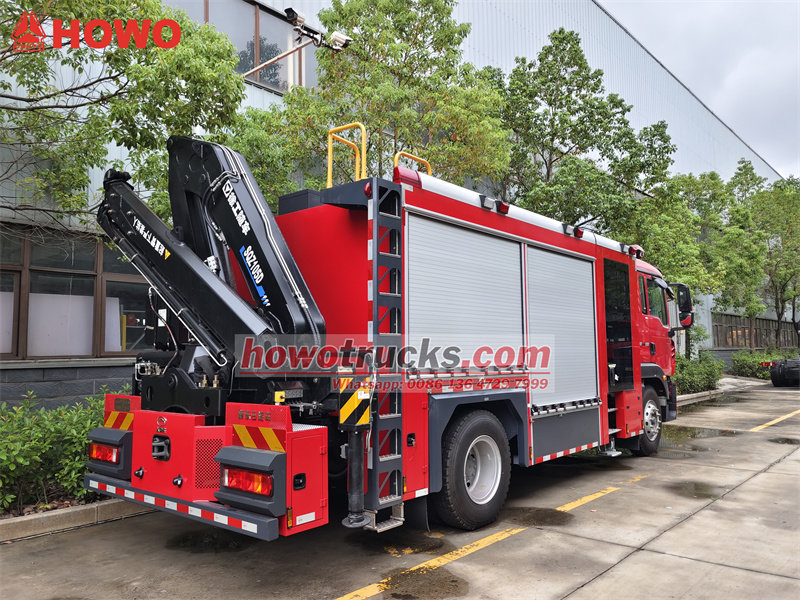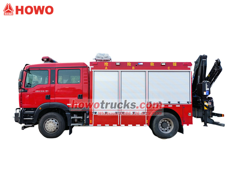 Đội cứu hỏa Howo có thể đồng thời đèn chiếu sáng khẩn cấp, xử lý vật nặng và lưu trữ dụng cụ chữa cháy.