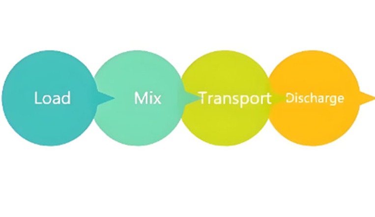 ▶ Đang tải: Xe tải được chất đầy các vật liệu cần thiết, bao gồm xi măng, nước và cốt liệu như cát hoặc sỏi. Các vật liệu được đổ vào thùng phuy thông qua một cửa sập nằm trên đỉnh thùng phuy.