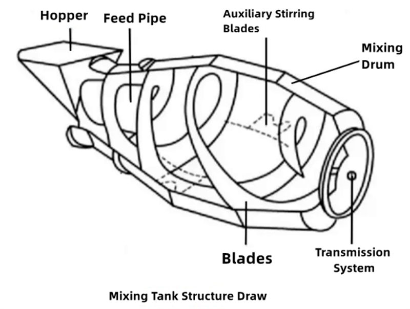 Nguyên tắc hoạt động cốt lõi của xe trộn bê tông là truyền động và trộn trong thùng trộn.