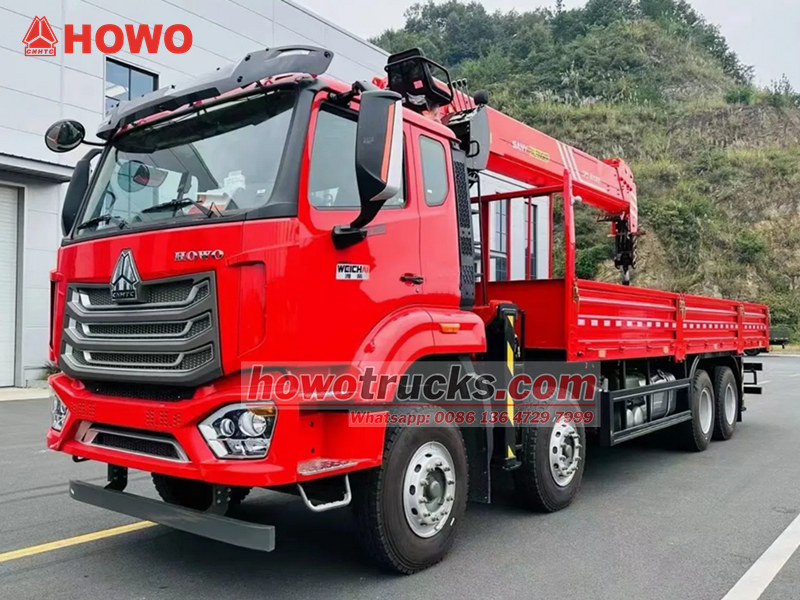 XCMG crane, UNIC crane, knuckle boom crane is optionalXe cẩu gắn trên xe tải HOWO NX 8×4 là một phương tiện hạng nặng đa chức năng kết hợp khả năng nâng và vận chuyển. Xe được trang bị cần cẩu Palfinger SPS40000 với tải trọng nâng tối đa 16 tấn và mô-men xoắn nâng 40 tấn-mét. Cần cẩu dạng ống lồng năm đoạn có thể kéo dài tối đa 19 mét và cùng với chức năng xoay 360 độ, cho phép vận hành linh hoạt trong nhiều tình huống nâng hạ khác nhau. Khung gầm dựa trên dòng HOWO NX, được trang bị động cơ diesel 9,7 lít công suất 273 kW, kết hợp với hộp số 10 cấp và hệ thống phanh khí nén để đảm bảo hiệu suất ổn định trong điều kiện làm việc phức tạp.