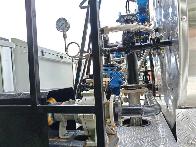 •Máy bơm nhựa đường: Bơm dầu nóng làm mát bằng không khí thông minh RY40-25-160, lưu lượng 10m³³Với lưu lượng 2900 vòng/phút, máy bơm này hỗ trợ vận chuyển ổn định nhựa đường ở nhiệt độ cao; thân bơm có chức năng gia nhiệt tích hợp để ngăn ngừa nhựa đường đông cứng.