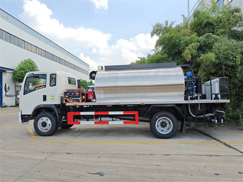 Xe phân phối nhựa đường Howo 4x2 5m³ được cải tiến từ khung gầm cabin đơn Howo 2080, với chiều dài cơ sở 3800mm. Xe được trang bị động cơ YN4102QBZL và hộp số WLY6TS55C. Phần thân xe bao gồm một thùng chứa nhựa đường 5 mét khối, một bơm nhiệt nhựa đường thông minh RY40-25-160 và 28 vòi phun nhựa đường ở phía sau, với chiều rộng phun 4 mét và tốc độ phun 0,20-1,5L/m³.㎡Nó được trang bị đầu đốt Riello G10 nhập khẩu từ Ý với hệ thống gia nhiệt dầu truyền nhiệt tự động, hệ thống điều khiển máy tính thông minh trong cabin và máy phát điện phụ trợ.