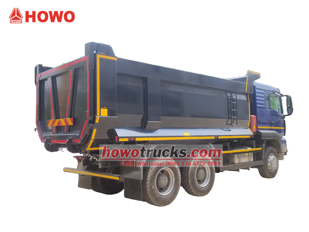 Xe ben tự đổ HOWO TX Cabin được cải tiến trên khung gầm HOWO TX Cabin 6x4, với chiều dài cơ sở 3200+1400mm, trang bị động cơ diesel WP10.380E22 công suất 380 mã lực, hộp số HW19710, 10 số tiến, 2 số lùi, và thùng ben làm bằng thép carbon với độ dày thành 6 mm, độ dày đáy 8 mm. 5200x2300x1400mm, Nâng phía trước, nâng ổn định, dỡ hàng nhanh chóng và sạch sẽ, cửa sau có thể mở, và xe được điều khiển bằng van điều khiển ở phía người lái, dễ vận hành.